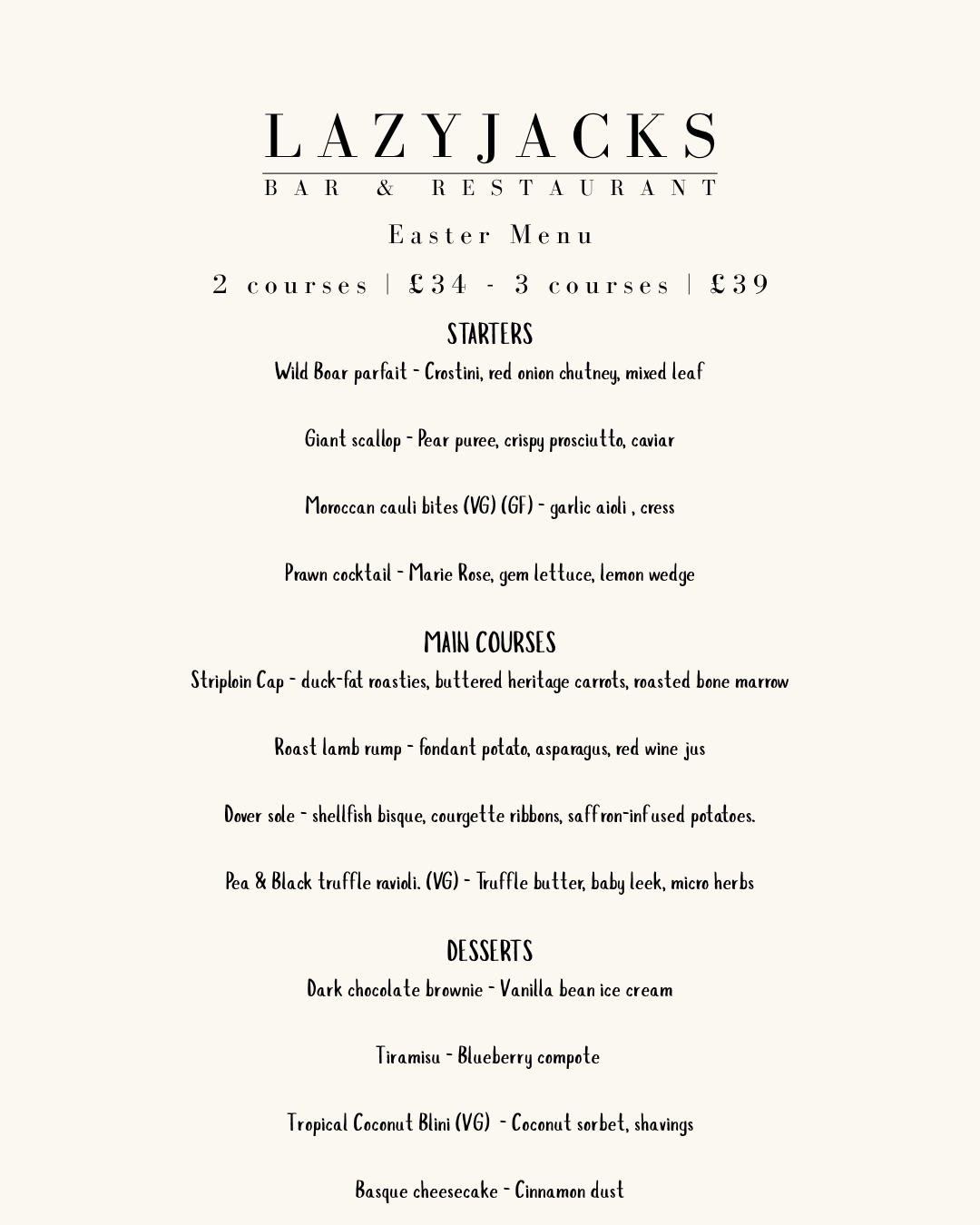 Easter Sunday Menu